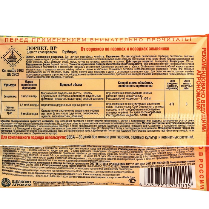 Гербицид для уничтожения сорняков на газоне и землянике "Лорнет", ампула, 3 мл