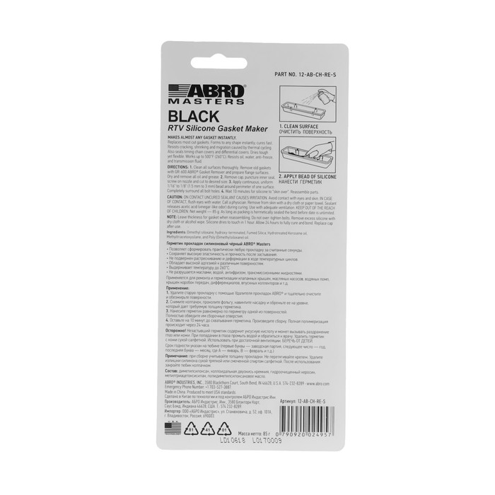 Герметик прокладок предназначен для ремонта или замены прокладок автомобиля. Герметик принимает любую форму, легко выдерживает растяжение, сжатие или сдвиг. Кроме того, не разрушается от воды, антифриза или масел. Стоит отметить его высокую стойкость к тормозной жидкости и бензину. Разработан для температур до 260 °С.
