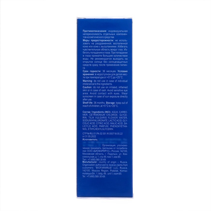 Состав: aqua, carbomer, cetrimonium chloride, glycerin, tilia vulgaris flower water, sodium hyaluronate, lactic acid, glycolic acid, citric acid, malic acid, salicylic acid, parfum, phenoxyethanol, ethylhexylglycerin.