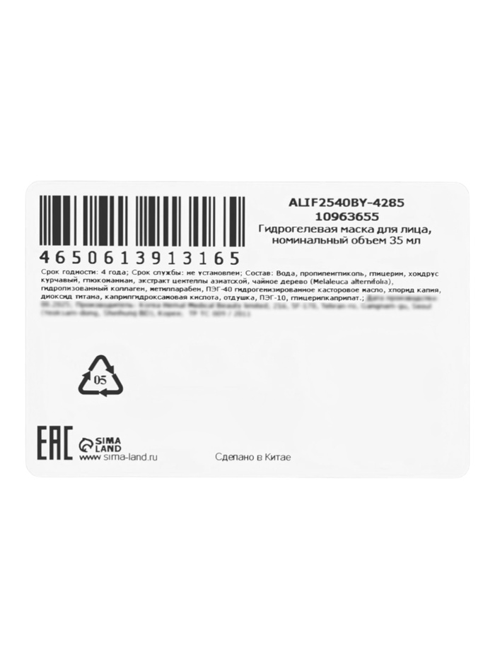 Гидрогелевая маска с экстрактом чая, 35 мл