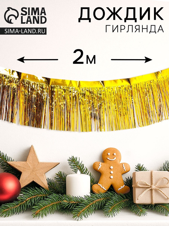 Яркая золотая гирлянда «Дождик» станет великолепным украшением интерьера на любой праздник! Длина гирлянды составляет 2 метра, это позволяет эффектно оформить любое пространство.