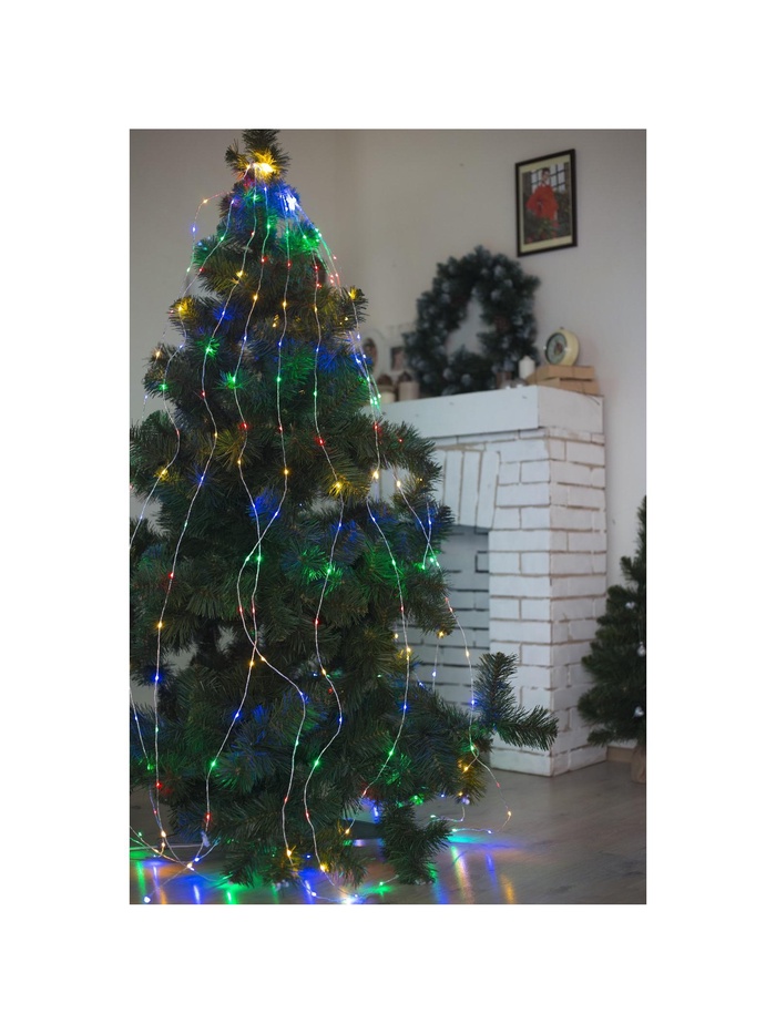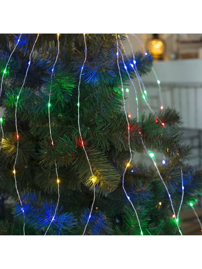 Гирлянда «Конский хвост» 15 нитей по 2 м, IP20, серебристая нить, 300 LED, свечение мульти, 220 В