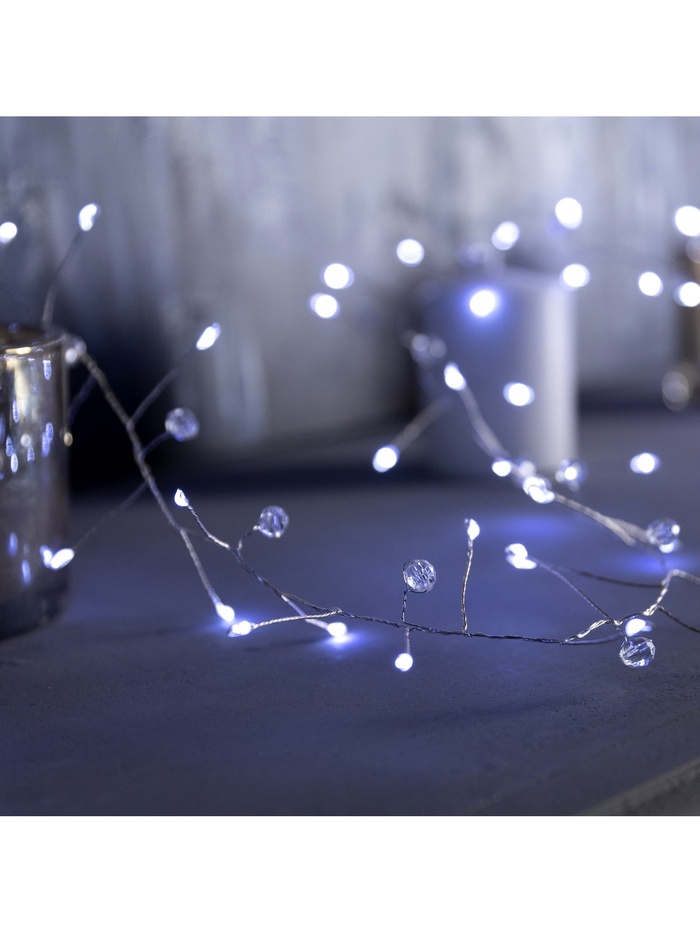 Гирлянда «Мишура» 2 м роса с насадками «Бусины», IP20, серебристая нить, 100 LED, батарейки ААх3 (нет в комплекте), свечение белое