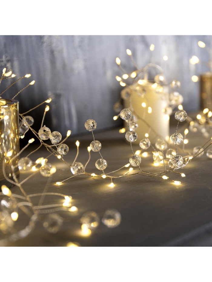 Гирлянда «Мишура» 2 м роса с насадками «Грозди», IP20, серебристая нить, 200 LED, свечение тёплое белое, ААх3