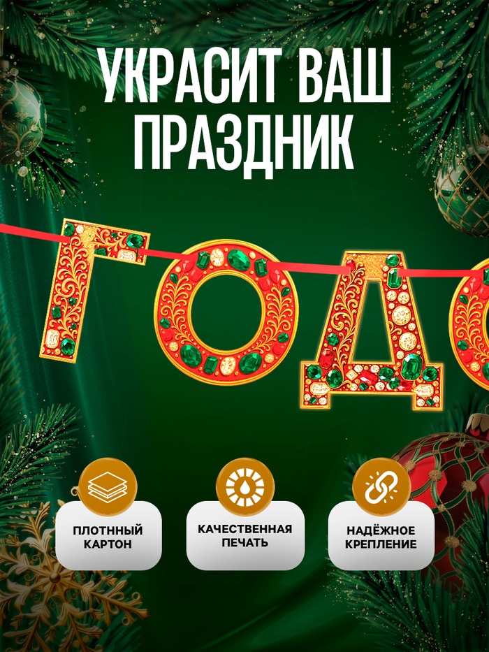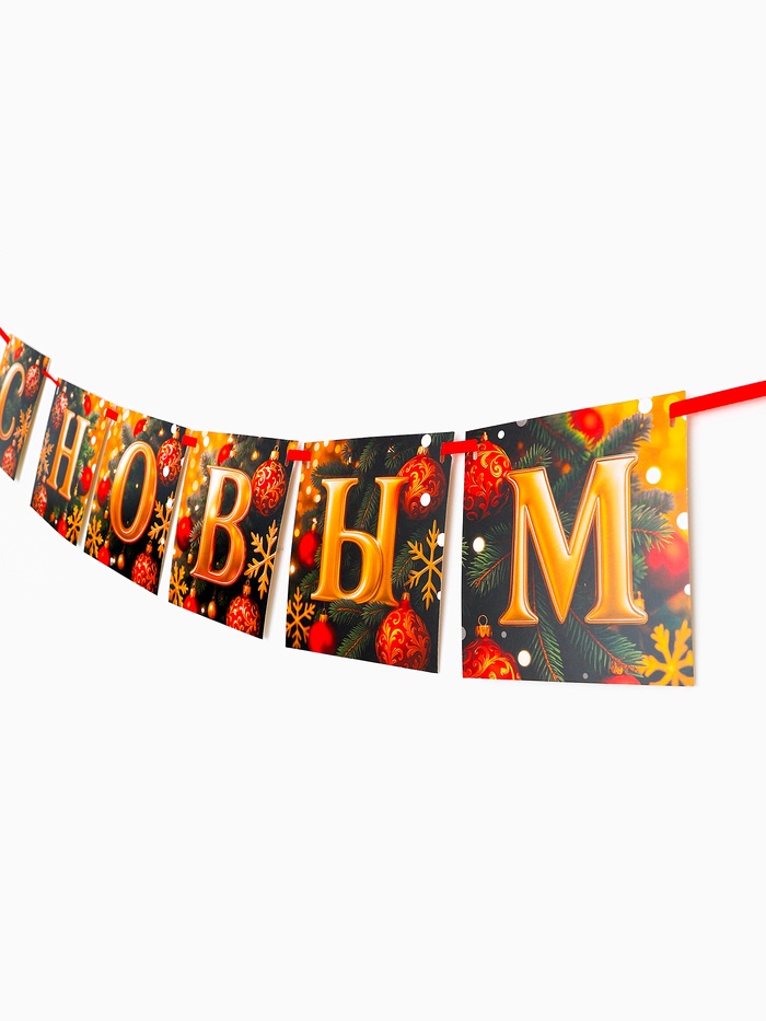 Гирлянда на ленте «С новым годом», драгоценности, 130 см