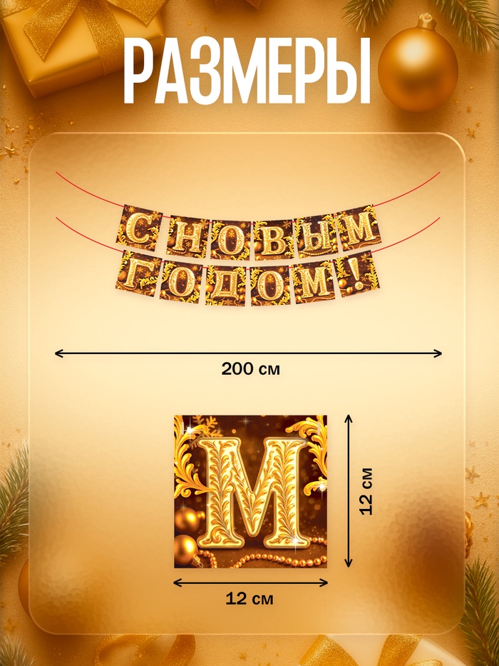 Гирлянда на ленте «С Новым годом», золото, 200 см