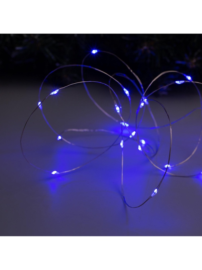 Гирлянда «Нить» 2 м роса, IP20, серебристая нить, 20 LED, батарейки CR2032×2 (в комплекте), свечение синее