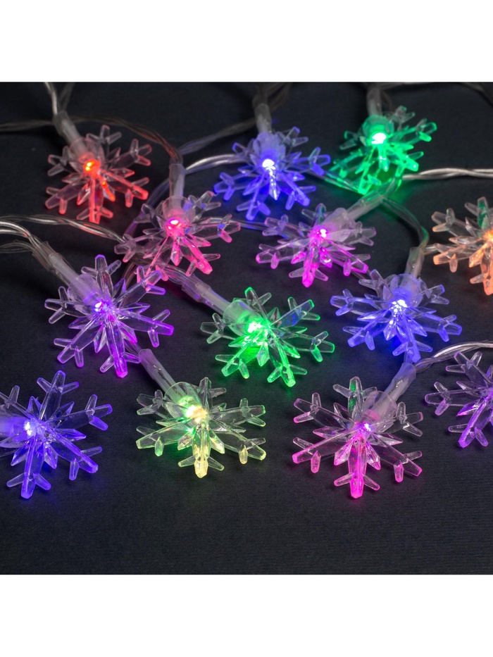 Гирлянда «Нить» 3 м с насадками «Снежинки большие», IP20, прозрачная нить, 20 LED, свечение мульти (RG/RB), мигание, USB