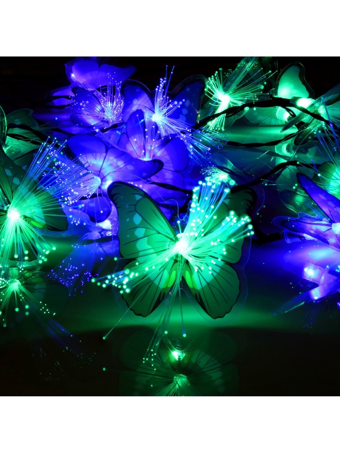 Гирлянда «Нить» 4.5 м с насадками «Бабочки», IP44, тёмная нить, 30 LED, свечение синее/зелёное, 2 режима, солнечная батарея