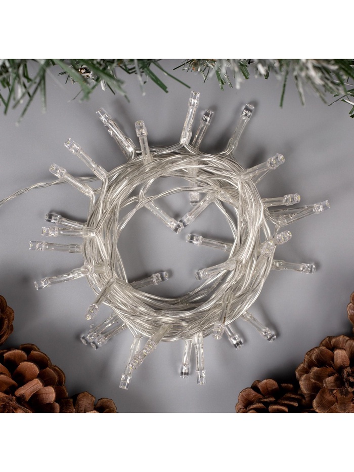 Гирлянда «Нить» 4 м, IP20, прозрачная нить, 40 LED, 2 режима, батарейки AAх3 (нет в комплекте), свечение белое