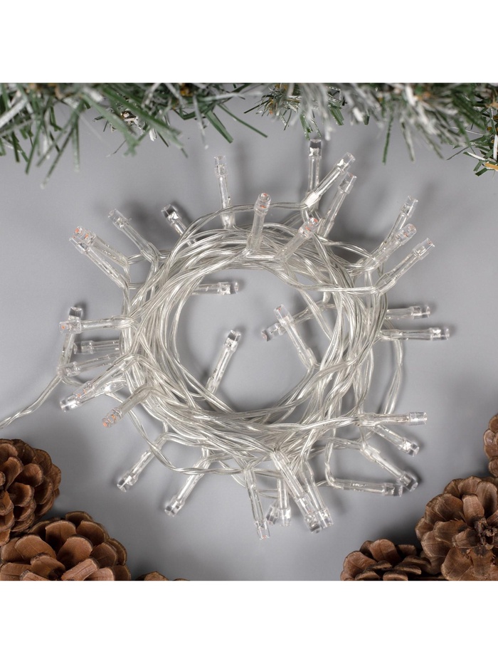 Гирлянда «Нить» 4 м, IP20, прозрачная нить, 40 LED, 2 режима, батарейки AAх3 (нет в комплекте), свечение красное