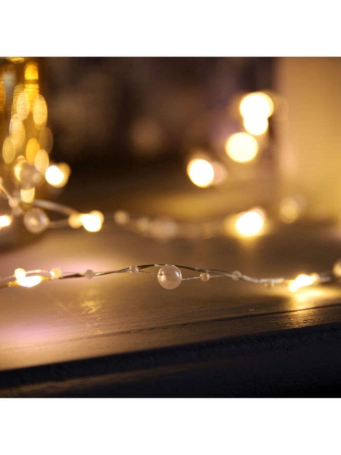 Гирлянда «Нить» 5 м роса с насадками «Перламутр», IP20, нить серебристая, 50 LED, батарейки AAx2 (не в комплекте), 2 режима, свечение тёплое белое