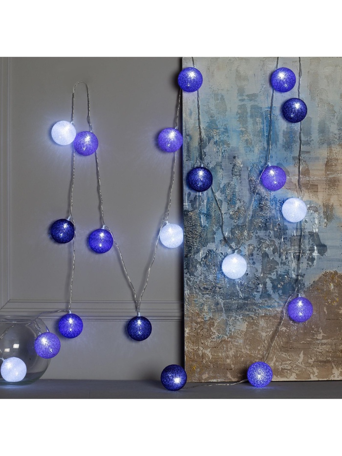 Светодиодная гирлянда с шариками из ниток станет прекрасным решением для создания праздничной атмосферы и уюта в интерьере. Она украсит карниз в спальне, стены в детской, фотозону или даже офисное помещение. Также гирлянда может служить отличным ночником для вашего малыша, а в спальне добавит интерьеру нежных красок и мягкий свет.