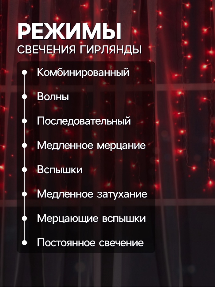 Занавес – это световой декор, который представляет собой набор вертикально расположенных нитей со светодиодными лампочками. Такие гирлянды создают эффект переливающихся световых завес, которые используются для украшения окон, стен, полок и других поверхностей.