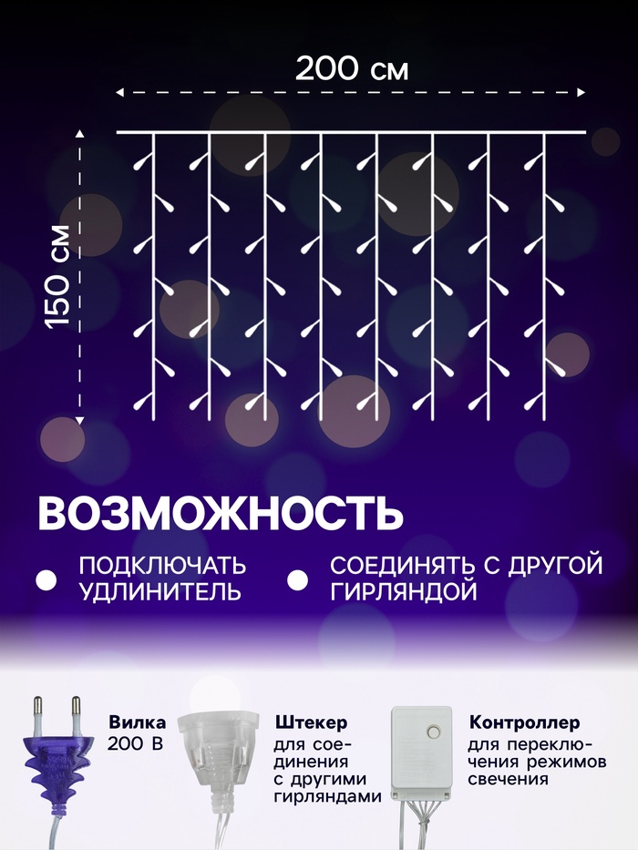 Занавес – это световой декор, который представляет собой набор вертикально расположенных нитей со светодиодными лампочками. Такие гирлянды создают эффект переливающихся световых завес, которые используются для украшения окон, стен, полок и других поверхностей.