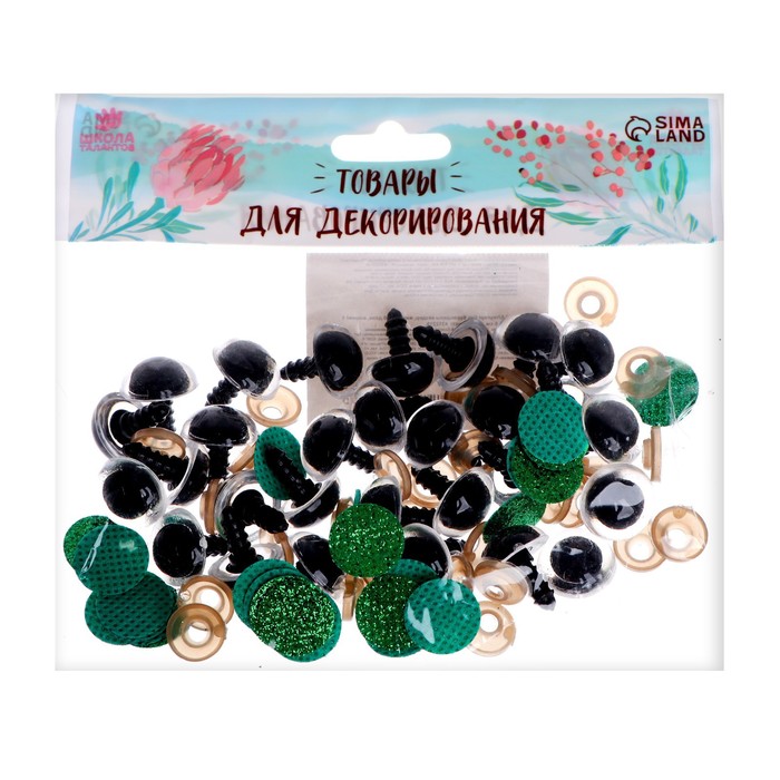 Глаза винтовые с заглушками, «Блёстки» набор 30 шт, размер 1 шт: 1,6 см, цвет зелёный