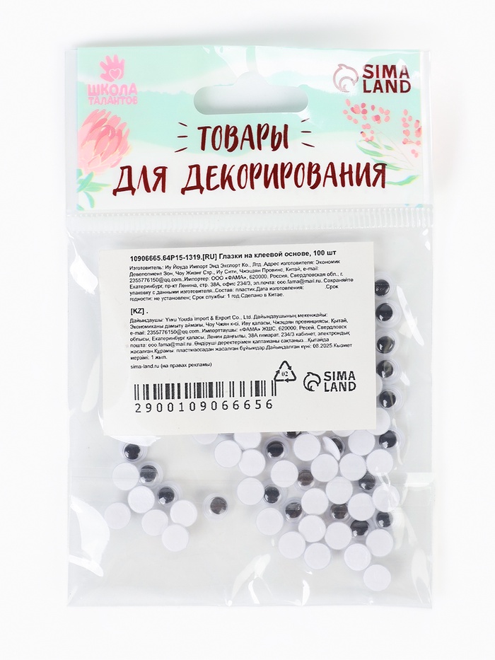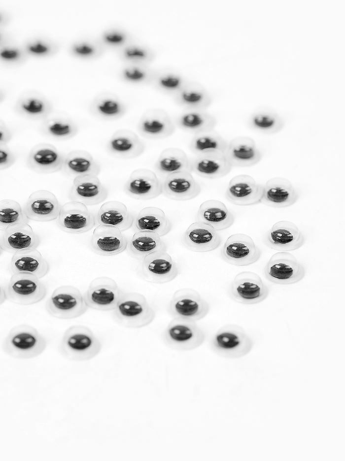 Глазки оснащены клеевой основой. Нужно снять защитный слой сзади и приклеить их на игрушку.
