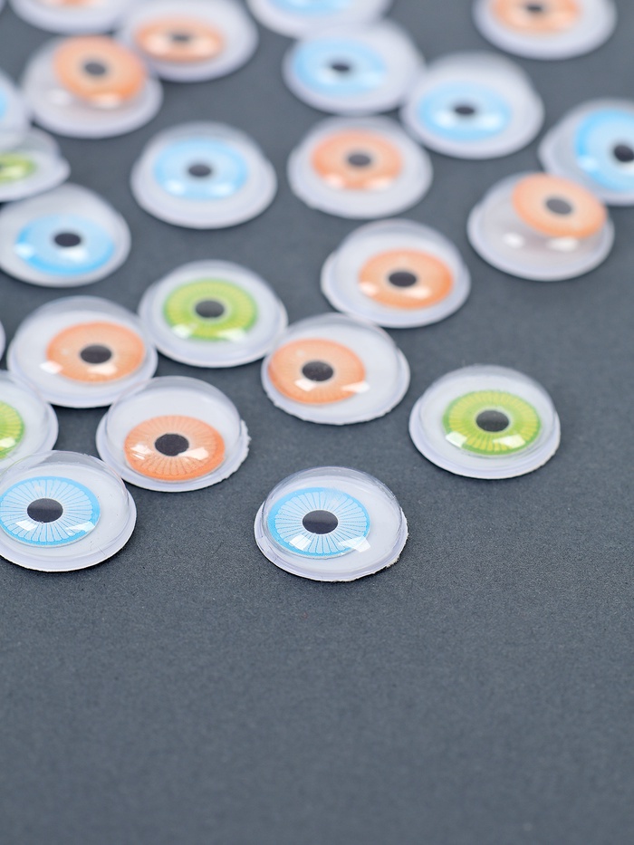 Глазки оснащены клеевой основой. Нужно снять защитный слой сзади и приклеить их на игрушку.