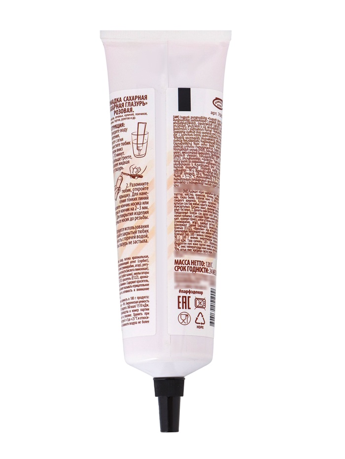 Глазурь сахарная — это идеальный глянцевый блеск, правильная консистенция, которая позволяет распределять глазурь аккуратно и равномерно по всей поверхности выпечки. Удобное нанесение сразу из тюбика!
