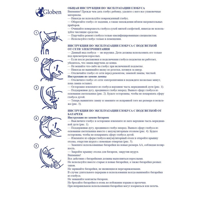 - удобство. Глобус работает от двух пальчиковых батареек и снабжен простым, знакомым даже малышу, переключателем. Поменять использованные батарейки так же легко, как лампочку в глобусах с подсветкой от сети.