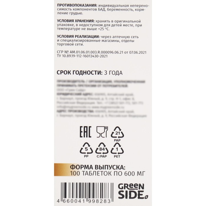 Хондроитинсульфат 1200 мг (200% от рекомендуемого суточного потребления)