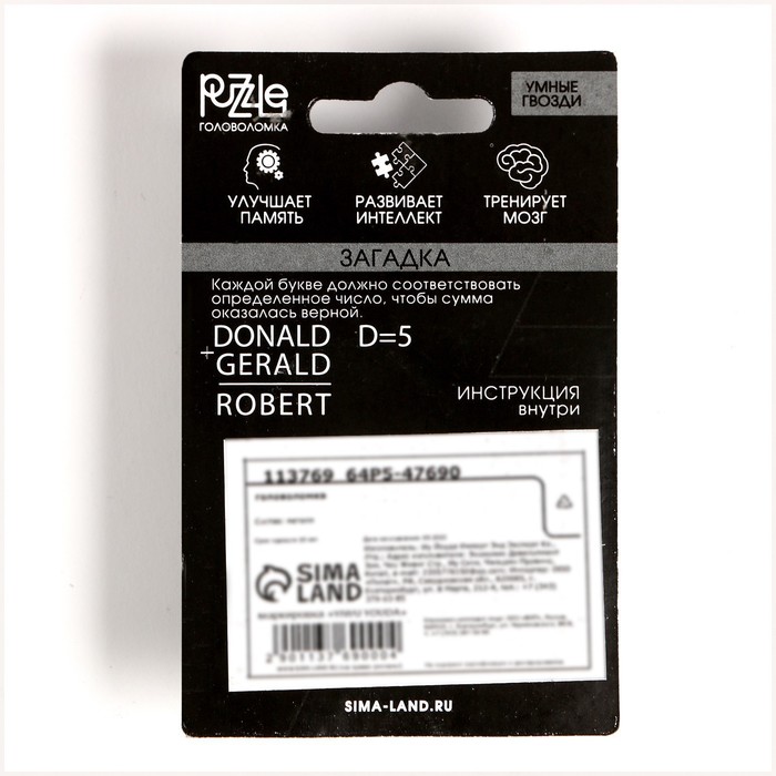 Головоломка Игры разума "Умные гвозди" №10 - это уникальный товар, способствующий развитию эрудиции, воображения, логического мышления, смекалки и умения концентрировать внимание. Хотите продемонстрировать друзьям свои интеллектуальные способности? Головоломка Игры разума "Умные гвозди" №10 поможет Вам в этом поможет.