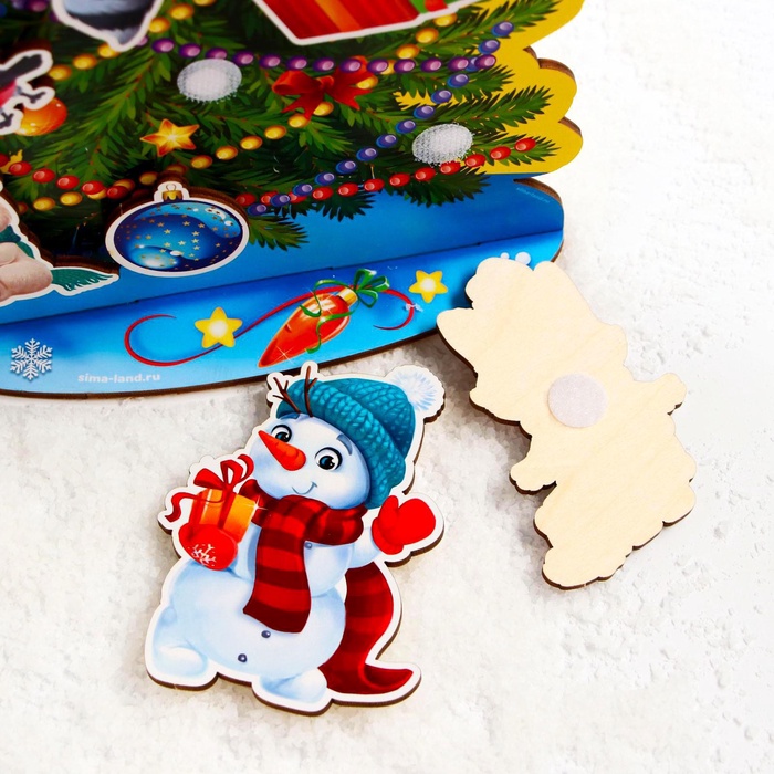 Детали на липучках легко крепятся к ёлочке. Такую игрушку удобно брать с собой.
