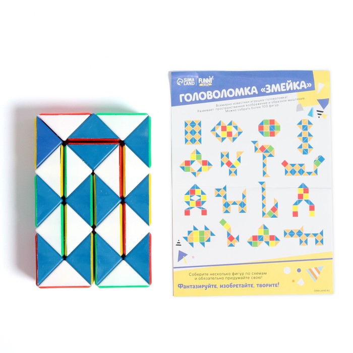 Головоломка «Змейка» — яркая и забавная головоломка станет отличным подарком для детей любого возраста. Она способствует развитию логического мышления, воображения, умения концентрировать внимание. Корпус головоломки выполнен из прочного пластика в ярких цветах.