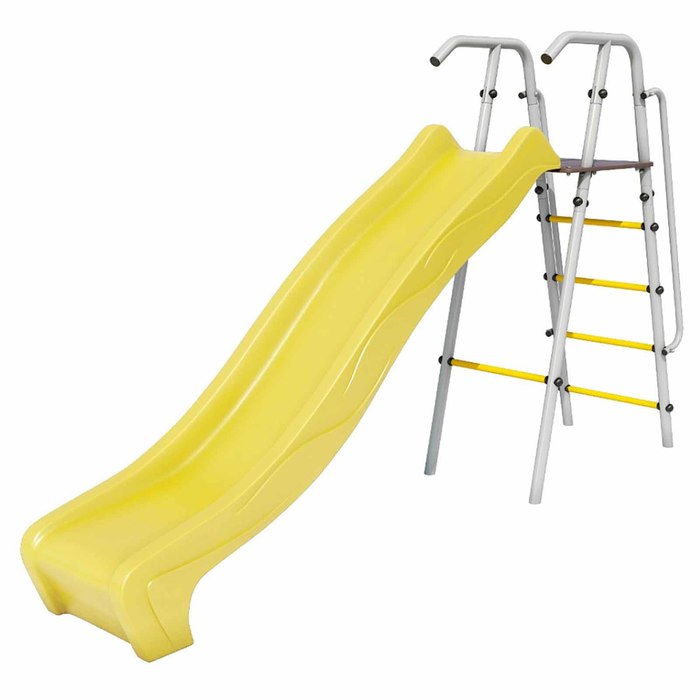 Горка выполнена из пластика, который не выцветает, сильно не нагревается на солнце и не леденеет зимой. Стальной каркас обеспечивает надёжность и долговечность эксплуатации.