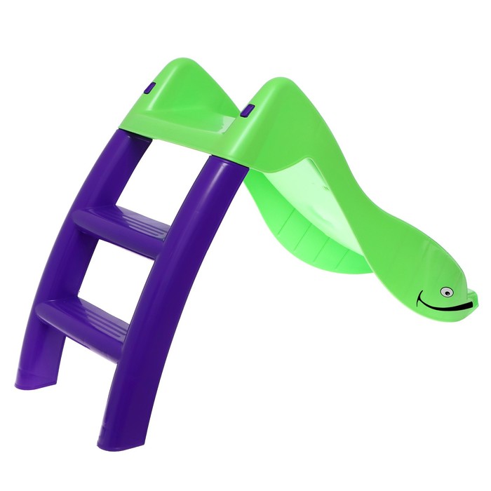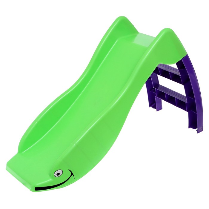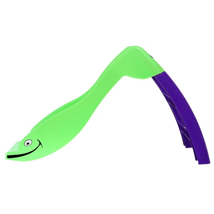 - Тематический дизайн: Горка оформлена в морском стиле с изображением дельфина. Фиолетовые и зеленые элементы создают солнечное настроение.