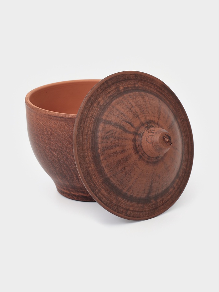 Глина аккумулирует тепло и равномерно прогревает блюдо со всех сторон.