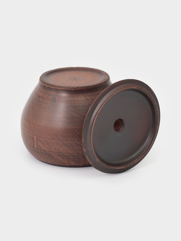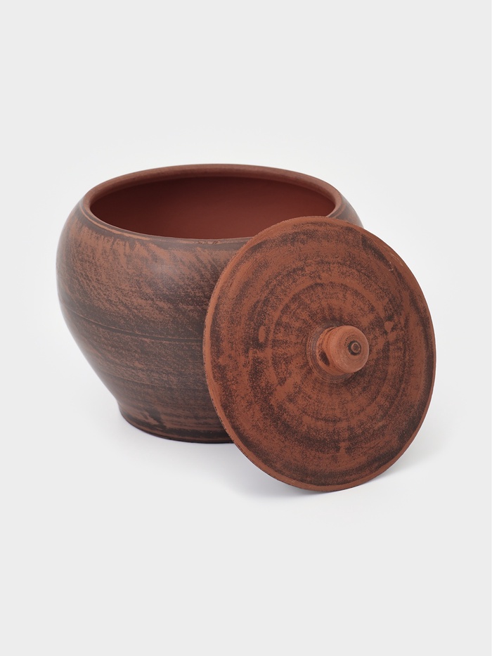 Горшочки изготовлены из натуральной красной глины — экологичного материала, который равномерно распределяет тепло и долго его удерживает. Благодаря этому блюда томятся постепенно, насыщаясь ароматами и сохраняя максимум полезных свойств. Естественный теплый оттенок и фактурная поверхность придают посуде аутентичный и уютный внешний вид.