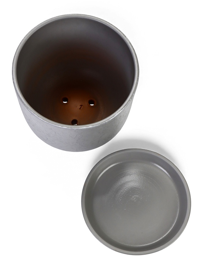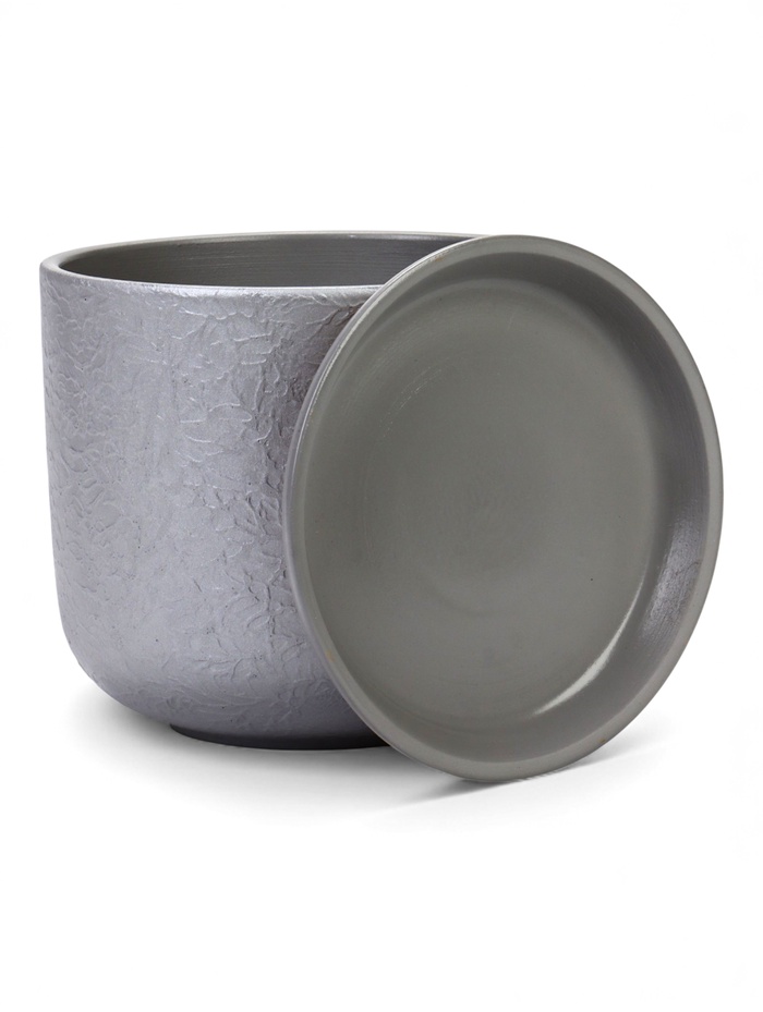 Горшок цветочный с поддоном 5,4 л, d22/h19 см серый керамика, "Перл" (М)