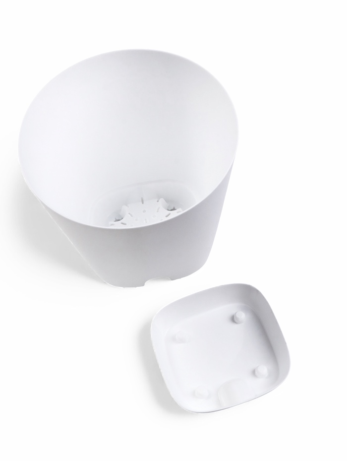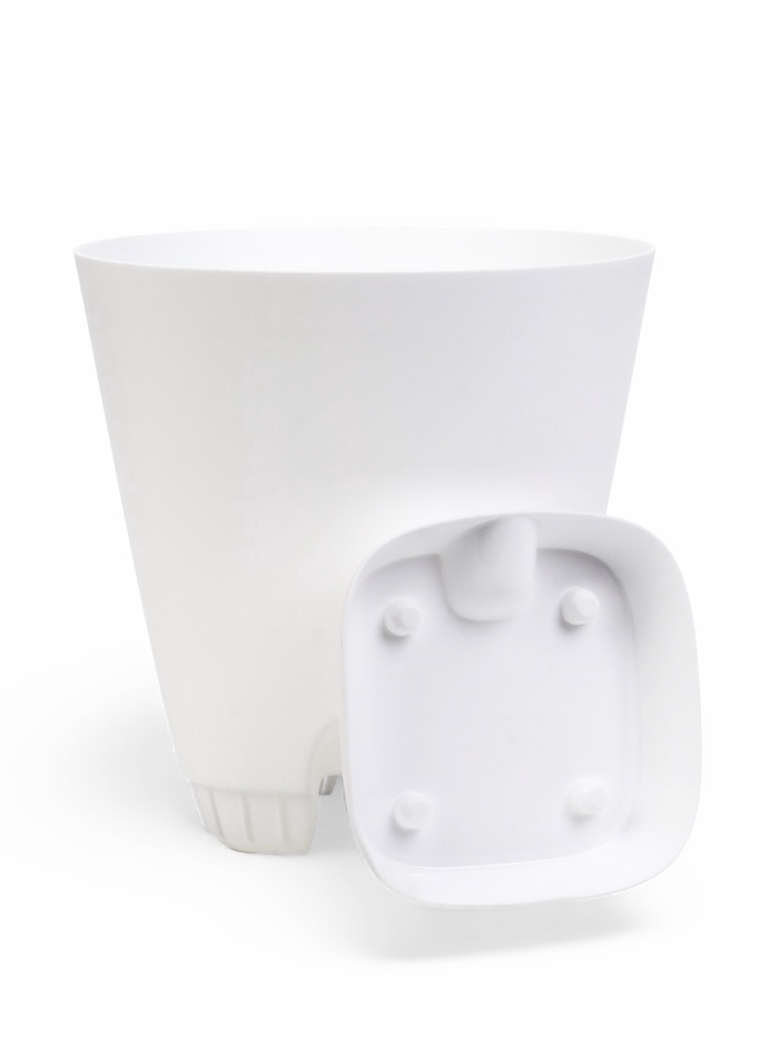 Оптимальное увлажнение: вода поступает прямо к корням, что особенно важно для растений, чувствительных к переувлажнению поверхности грунта. Горшок подходит для разнообразных среднерослых культур, требующих стабильного режима полива. Классический белый цвет гармонично вписывается в разные стили интерьера.