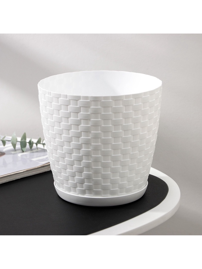 Горшок для цветов с поддоном «Ротанг», 3 л, d=17 см, h=17 см, пластиковый, белый