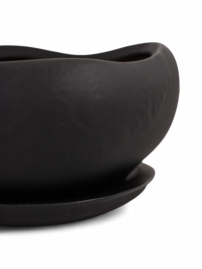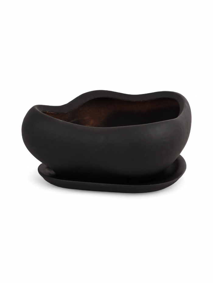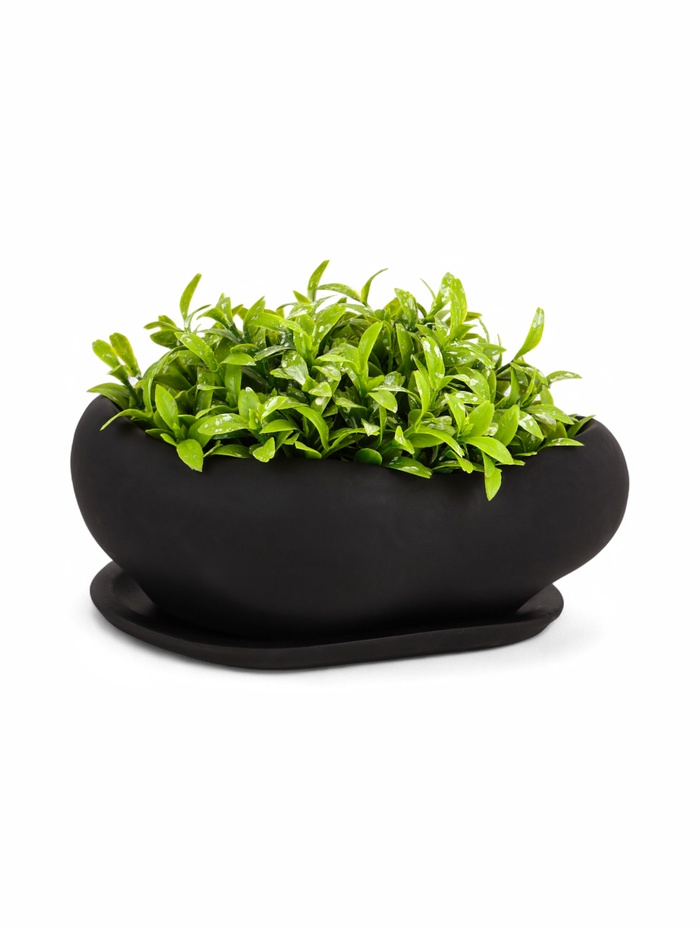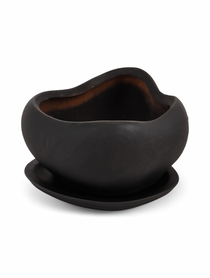 Горшок для для кактусов и суккулентов «Бонсай малый», 600 мл, 17×14×7 см, керамика, с поддоном, чёрный