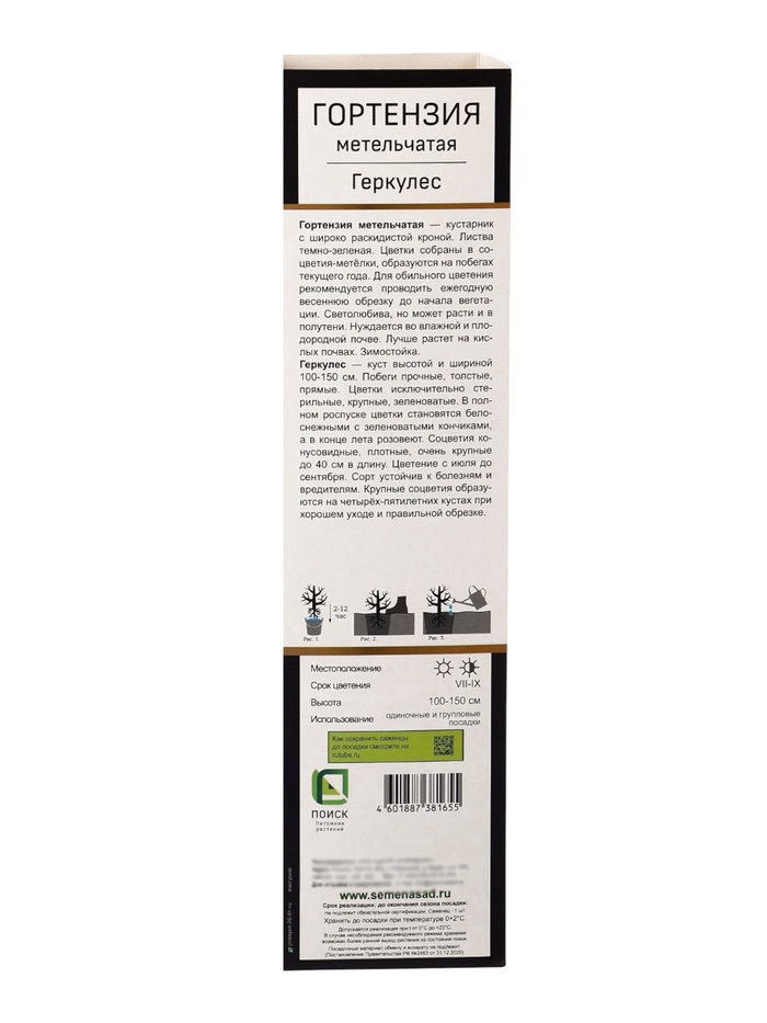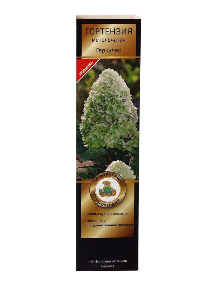 Гортензия метельчатая Геркулес - куст высотой и шириной 100-150 см. Побеги прочные, толстые, прямые. Листья тёмно-зелёные, с обеих сторон грубо опушённые. Цветки исключительно стерильные, крупные, зеленоватые, в полном расцвете белоснежные с зеленоватыми кончиками, в конце лета розовеющие. Соцветия конусовидные, плотные, очень крупные. Цветение с июля до сентября. Место солнечное или полутенистое. Почва умеренно плодородная, слабокислая, влажная, дренированная. Сорт устойчив к болезням и вредителям.