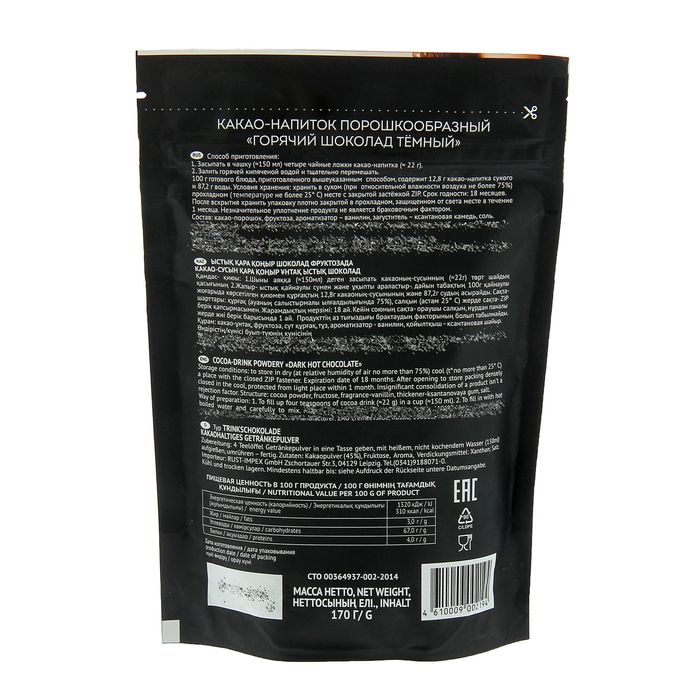 Горячий темный шоколад "Фитодар" на фруктозе, 170 г