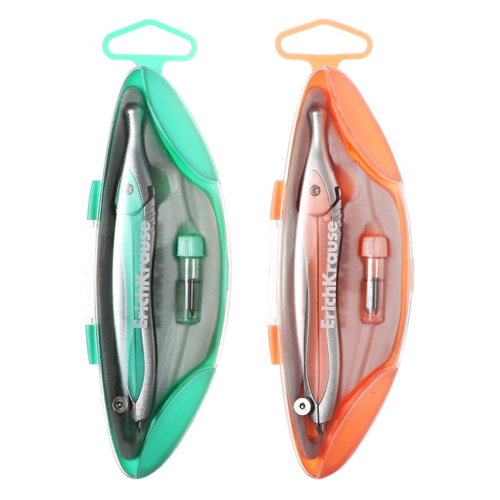 Металлический циркуль с максимальным радиусом 150 мм. В комплект входят сменные грифели в пластиковом контейнере. Упакован в удобный пластиковый футляр с европодвесом.