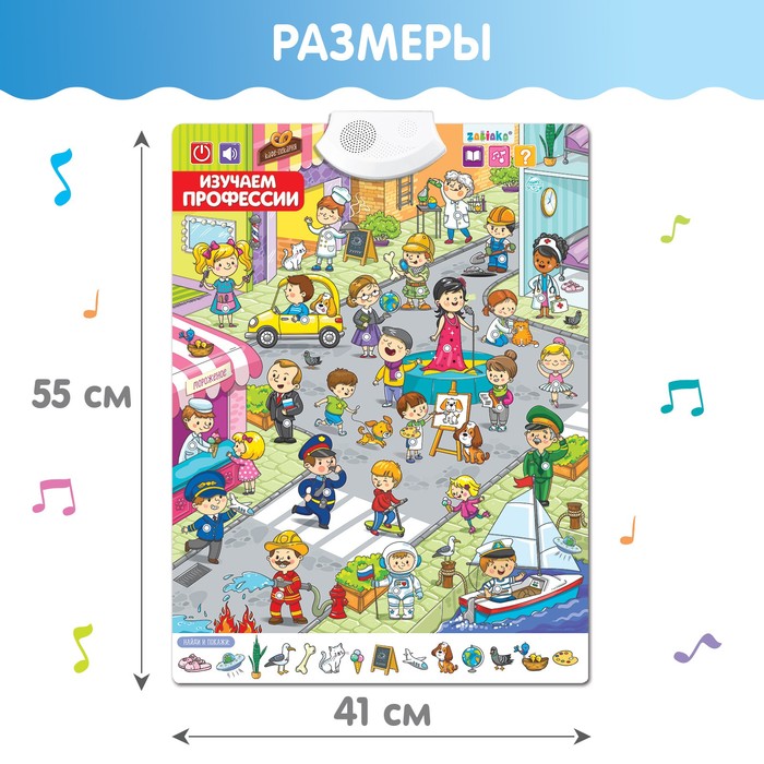 Обучающий плакат «Профессии» поможет ребёнку узнать много нового и интересного про взрослый мир.