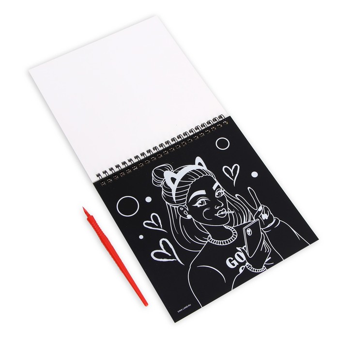 - 5 листов, покрытых чёрным слоем, на который нанесён контур рисунка. Процарапайте его с помощью штихеля, и сквозь контуры проступит сияющий золотой слой.