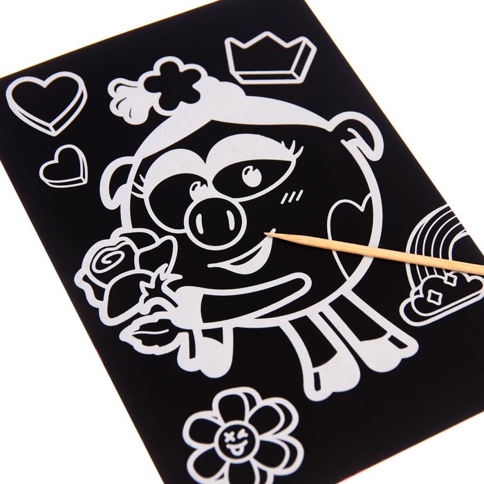 Гравюра представляет собой многослойное панно, покрытое чёрной краской, на которое нанесён контур рисунка. С помощью особого скребка (штихеля), который входит в набор, путём процарапывания и создается гравюра.