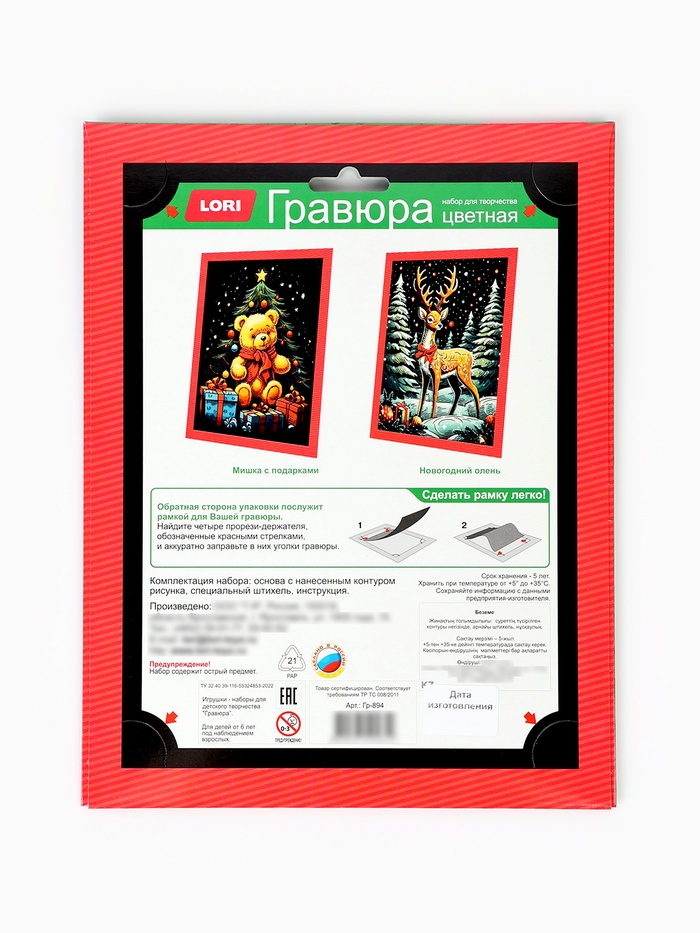 - Обратная сторона упаковки является рамкой для работы