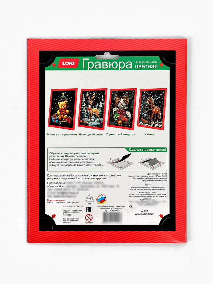 - Обратная сторона упаковки является рамкой для работы