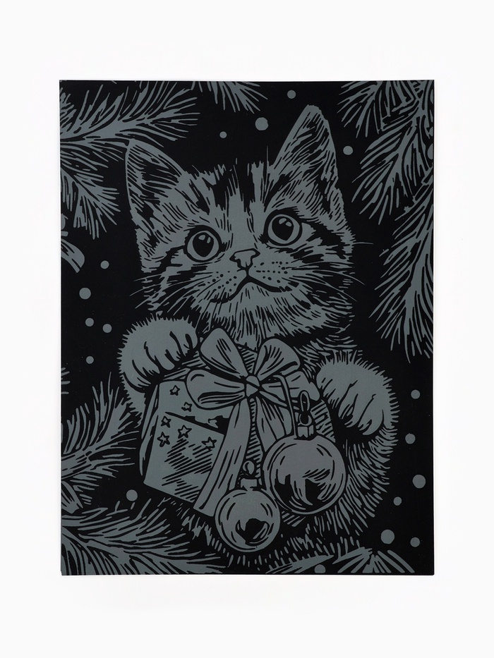 На чёрную основу уже нанесён белый контур рисунка. Задача ребёнка аккуратно процарапать штихелем белые контуры, чтобы получить яркую картинку!