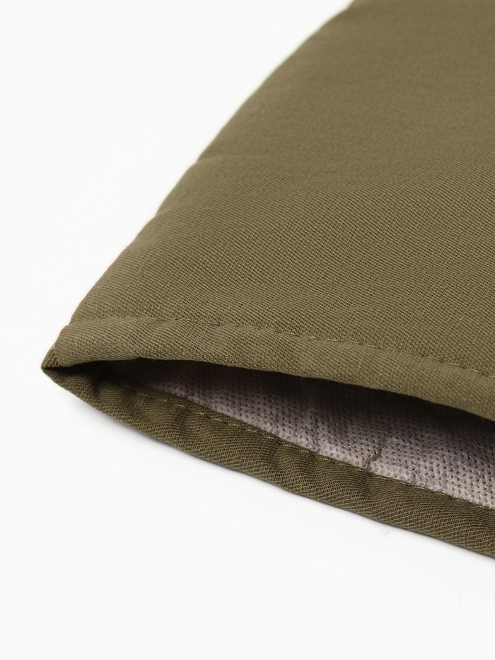 - Стильный дизайн: однотонный зелёный цвет и аккуратная нашивка придают грелке современный и элегантный вид.