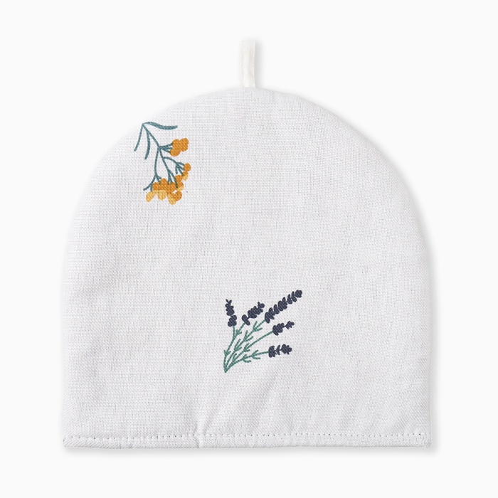 Создайте атмосферу весеннего уюта на своей кухне с грелкой для чайника, которая станет не только практичным, но и стильным аксессуаром. Белый фон с цветочными мотивами добавляет свежести и радости в интерьер, а декоративная петелька делает использование грелки ещё более удобным.