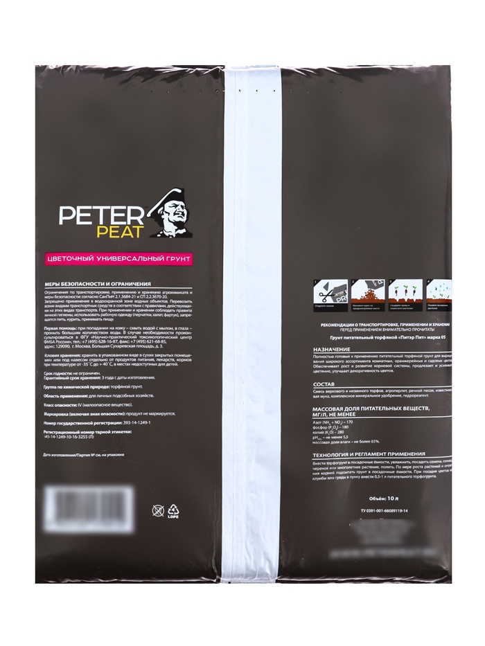 Применение: при выращивании рассады или пересадке цветов внести универсальный цветочный грунт в посадочные ёмкости, увлажнить, посадить семена (сеянец, черенок или многолетнее растение), полить. По мере роста растений и оголения корней подсыпать грунт в посадочные ёмкости. При посадке цветов на клумбы или гряды в лунку внести 0,5-1 л грунта или смешать с почвой.