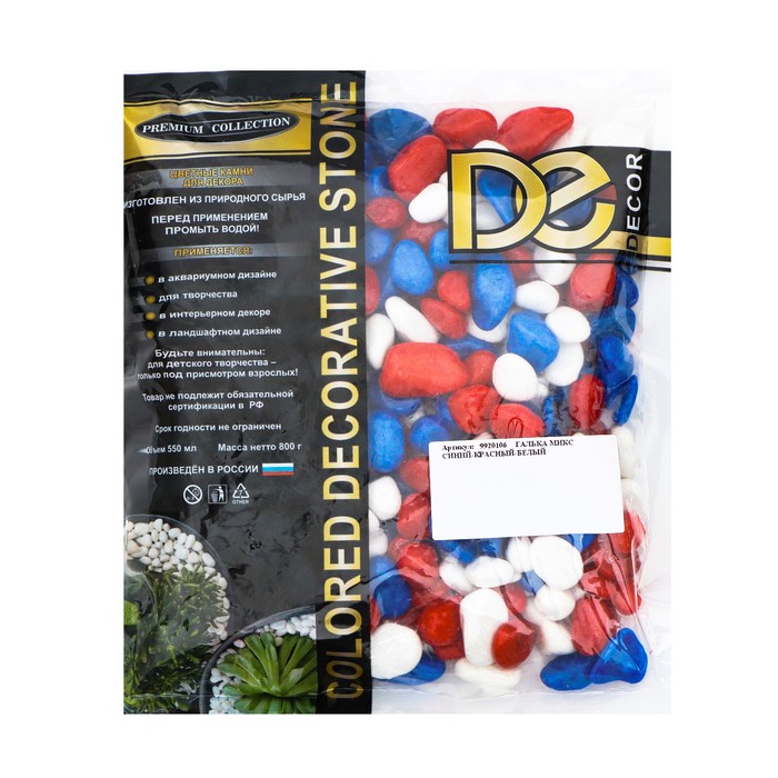 Грунт для аквариума "Галька цветная, белый-синий-красный" 800г фр 8-12 мм