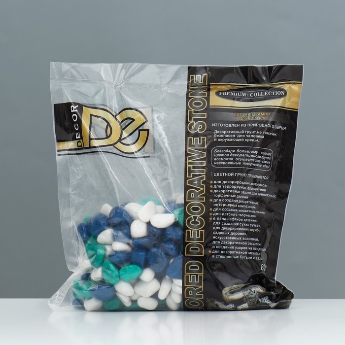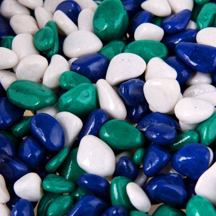 Грунт для аквариума "Галька цветная, белый-темн. синий-изумрудный" 800г фр 8-12 мм
